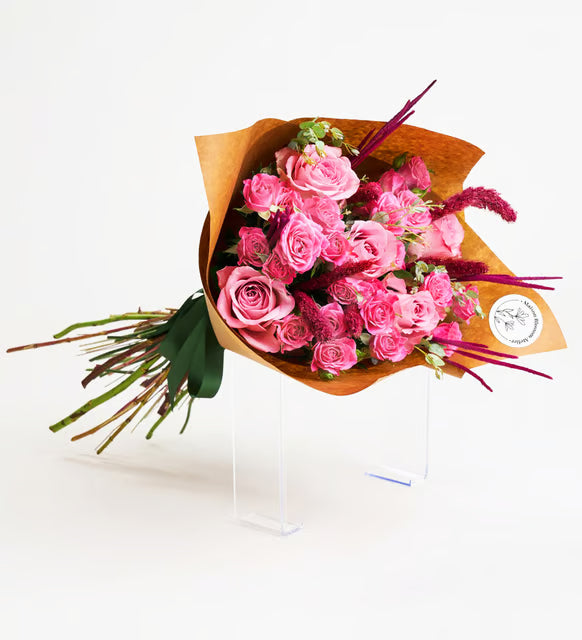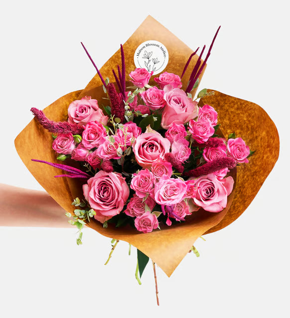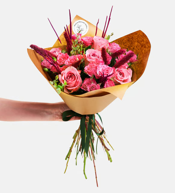باقة كرافت من 5 ورود وردية مع ورود متسلقة
